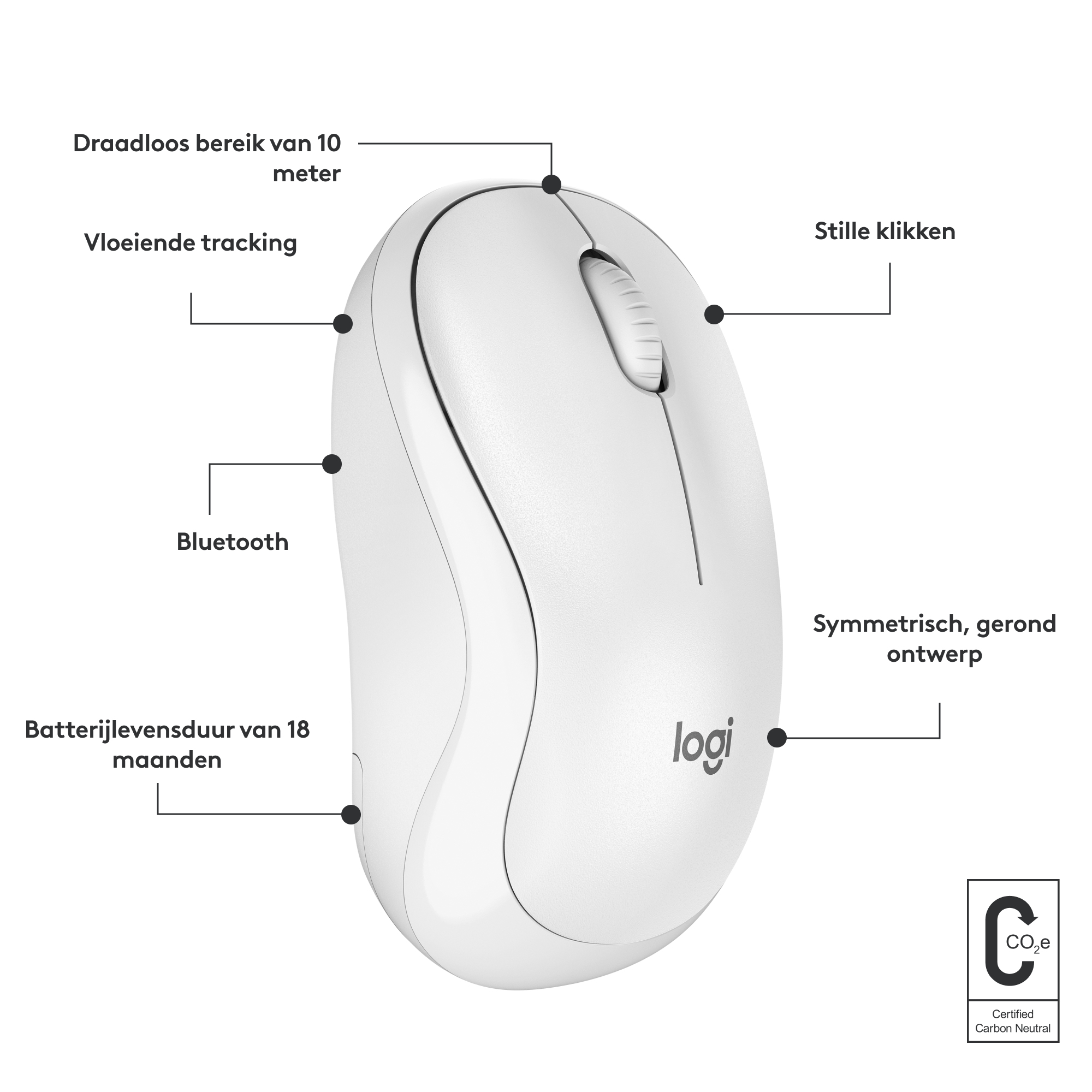 Logitech M240, Ambidextrous, Bluetooth, White